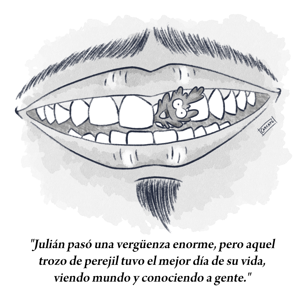 Trozo de perejil de Borja Carcayú FacebookTwitterWhatsAppEmail FacebookTwitterWhatsAppEmail Borja CarcayúAspirante a dibujante, comediante de mis traumas, siempre he trabajado el humor tanto en solitario como en compañía, publicando obras propias como "En Pelotas" (junto a Alba Bonoreta) o participando en títulos corales como "Sextories". DEJA UNA RESPUESTA Cancelar respuesta Comentario: Por favor ingrese su comentario! Nombre: Por favor ingrese su nombre aquí Correo electrónico: ¡Has introducido una dirección de correo electrónico incorrecta! Por favor ingrese su dirección de correo electrónico aquí Sitio web: Guardar mi nombre, correo electrónico y sitio web en este navegador la próxima vez que comente. Δ Artículo anteriorAixí comença la novel·la de detectius que no he escrit aquest estiuArtículo siguienteLas aventuras veraniegas de Agustín en el puerto de Blanes Más cosas Se vende octubre 19, 2025 Soy la hormiga Trancas y estoy al borde de una crisis nerviosa porque tengo que ganar el próximo Premio Planeta octubre 19, 2025 A quien quiera que lea esto, soy Trancas, una de las entrañables hormigas de «El Hormiguero» y escribo estas líneas para que quede constancia... Zebras ardiendo octubre 12, 2025 Per la secció d’esports octubre 12, 2025